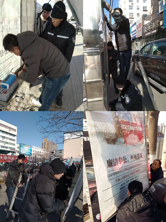 為確保春節(jié)和兩會期間安全生產(chǎn)工作順利進行,通誠廣告公司設(shè)備科和業(yè)務(wù)科積極開展每日自檢自查,主要針對出租車乘降站及公交候車亭進行安全大檢查。