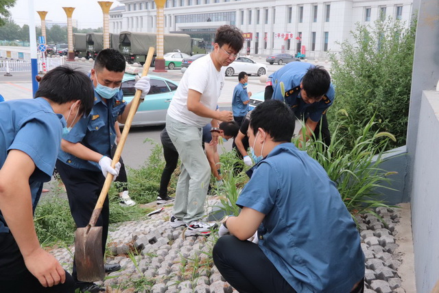 7月31日下午,交通集團(tuán)黨委為了配合我市創(chuàng)城工作,按照市委市政府及市交通運(yùn)輸管理局相關(guān)要求。集團(tuán)黨委副書記李曉國(guó)、副總經(jīng)理孫曉猛帶領(lǐng)集團(tuán)及下屬各級(jí)黨組織150余名黨員來(lái)到錦州南站廣場(chǎng) ,開展黨員志愿服務(wù)活動(dòng)。 在活動(dòng)中,同志們手拿鐮刀、鏟子、掃帚等工具對(duì)火車站周邊樹坑及停車場(chǎng)衛(wèi)生和雜草進(jìn)行清理,充分發(fā)揚(yáng)了不怕臟、不怕累的優(yōu)良作風(fēng)和團(tuán)結(jié)協(xié)作的精神,以企業(yè)為單位,積極投身到環(huán)境衛(wèi)生清除的行列中。把地面上、草叢里的塑料垃圾、廢棄紙巾、玻璃碎片全部撿起,把枯枝、雜草、落葉逐一清理。大家相互合作,認(rèn)真、細(xì)致的打掃每個(gè)角落,確保衛(wèi)生不留死角。經(jīng)過(guò)一下午努力,南站廣場(chǎng)及周邊被清理得干干凈凈,面貌煥然一新,贏得了出行旅客的一致肯定和好評(píng)。 這次活動(dòng)的開展,響應(yīng)了市委市政府創(chuàng)城的號(hào)召,不僅是美化了環(huán)境,也進(jìn)一步增強(qiáng)了集團(tuán)黨委的凝聚力、戰(zhàn)斗力和號(hào)召力,錘煉了集團(tuán)黨員的堅(jiān)韌與毅力,真正做到了為人民群眾做實(shí)事辦好事。